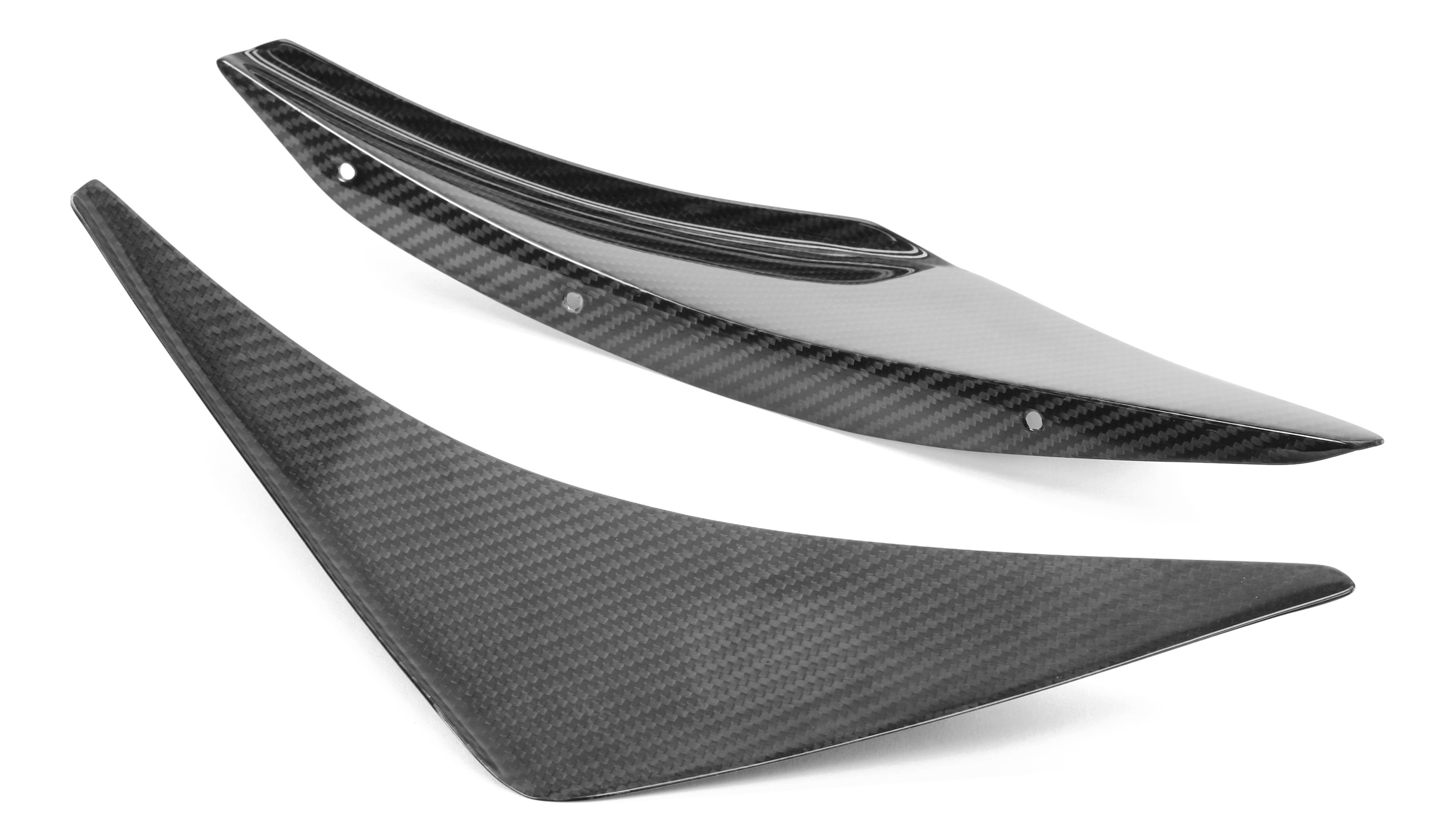 APR Performance Front Bumper Canards help to aerodynamically fine-tune downforce balance. Formed in the autoclave at high temperatures, the APR Performance Front Bumper Canards are made from pre-preg carbon fiber materials to be strong and light weight.