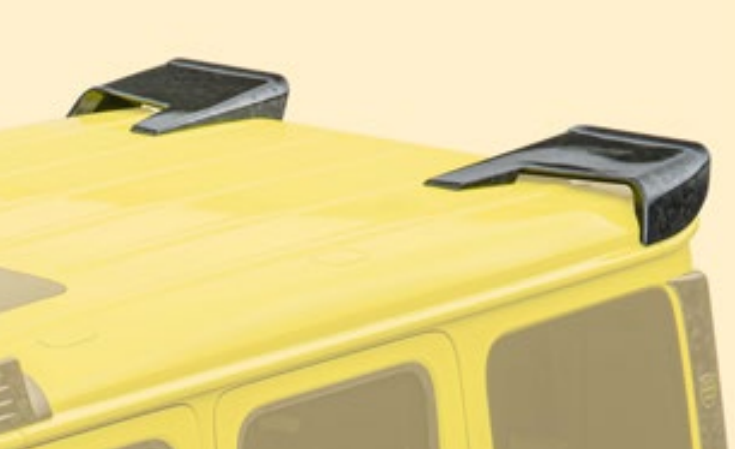 The roof wing sits at the rear of the roof line. Forward of it, the W465 Gronos kit offers a family of front-roof carbon panels carrying auxiliary or position lights: